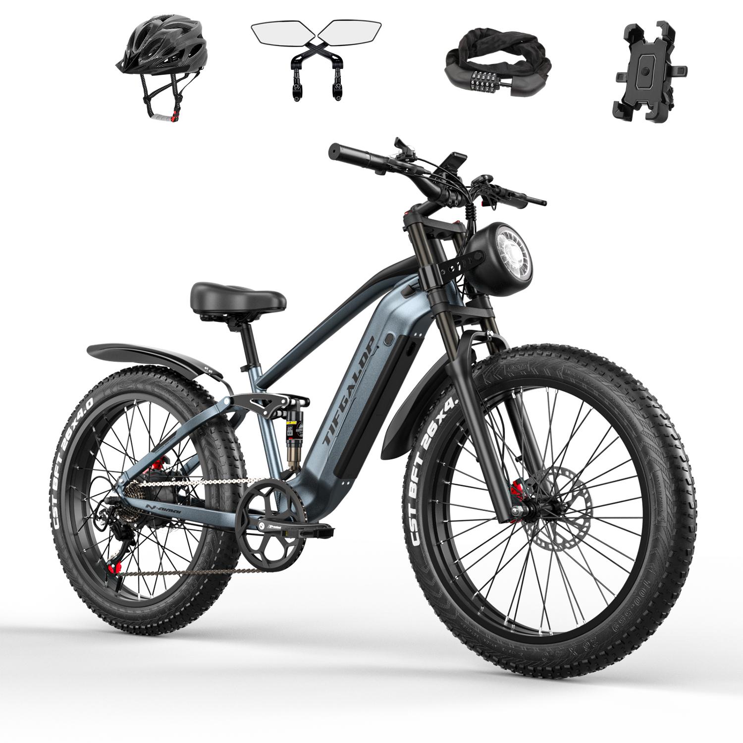 Vélo électrique TIFGALOP 26 pouces, moteur 1000W, batterie lithium amovible 48V22Ah, autonomie 45-90 km, double suspension