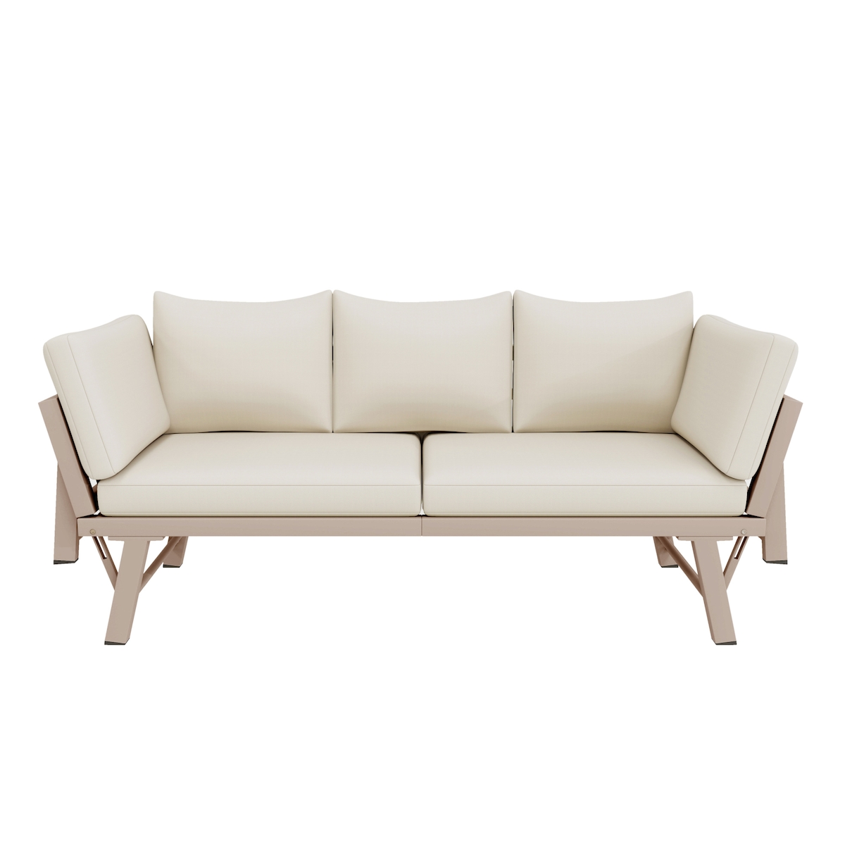 Merax Gartenmöbel Outdoor Lounge 3-Sitzer-Sofa, verzinkter Eisen, Sonnenliege mit klappbaren Armlehnen, Beige