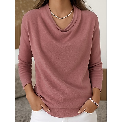 Per donna Blusa Elegante Essenziale Casual Manica Lunga Top Regolari Quotidiano Ferie Vino Rosa polverosa Blu Grigio Autunno Inverno