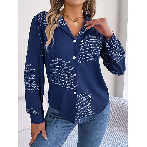 Per donna Camicia Camicia button-down Camicia casual Bottoni Lettera Elegante Classico Moderno Manica Lunga Colletto a Camicia Top Regolari Quotidiano Ferie Uscire Blu Bianco Vino Estate Primavera
