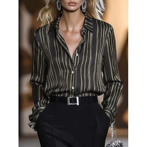 Per donna Camicia Grafico Geometrico Vintage Elegante Classico Manica Lunga Colletto a Camicia Top lunghi Quotidiano Ferie Nero Primavera Autunno