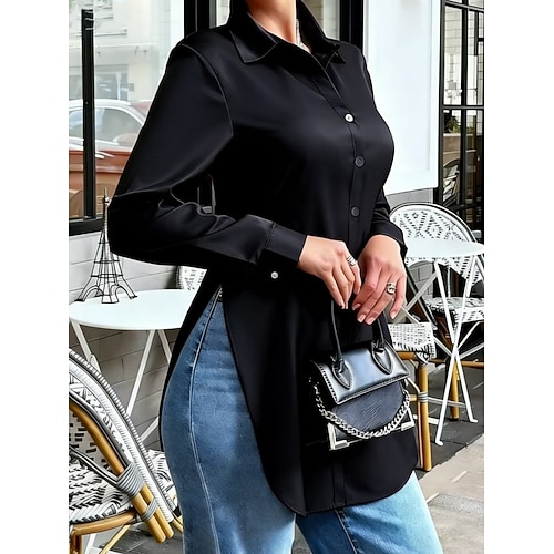 Per donna Camicia in raso Camicia elegante Camicia da lavoro Camicia con Bottoni Tinta unica Elegante Moda Essenziale Manica Lunga Collo ripiegato Colletto a Camicia Top Regolari Lavoro Abbigliamento
