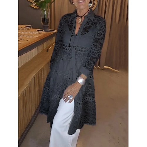 Per donna Camicia Camicia di Pizzo Blusa Pizzo Illusione Semplice Elegante Classico Moderno Manica Lunga Colletto a Camicia Top Regolari Quotidiano Ferie Uscire Bianco Albicocca Estate Primavera