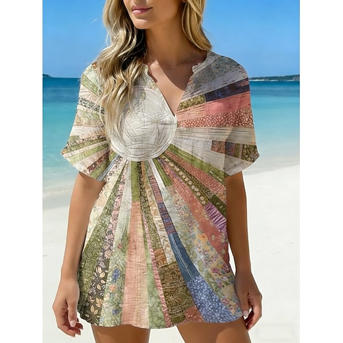 Per donna Camicia Camicia casual Camicia da Spiaggia Blusa Stampato Floreale Grafico Bohemien Elegante Moderno Manica Corta Scollo a V Top Regolari Quotidiano Ferie Uscire Blu Giallo Verde chiaro