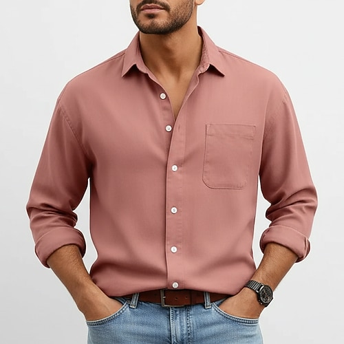 Per uomo Camicia Camicia casual Camicia con Bottoni Nero Bianco Rosa Borgogna Blu marino Manica Lunga Semplice Colletto a Camicia Casuale Quotidiano Tasca Frontale Abbigliamento Elegante Moda Casual