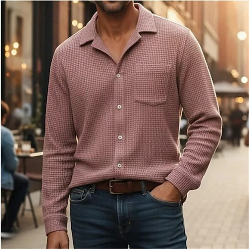Per uomo Camicia Camicia a nido d'ape Tessuto Camicia casual Nero Rosa Blu marino Verde Grigio Manica Lunga Semplice Colletto cubano Casuale Quotidiano Tasca Frontale Abbigliamento Elegante Moda