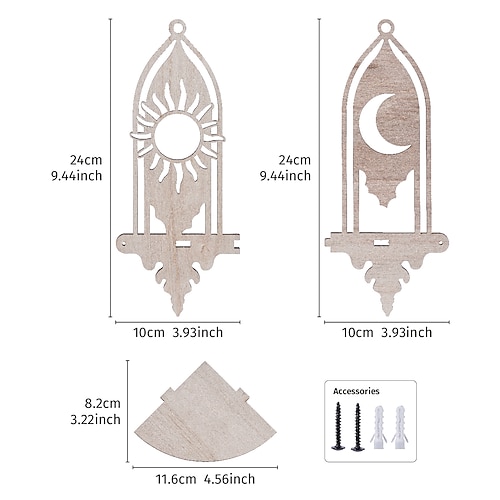 1 pezzo di decorazione da parete in legno con sole e luna, scaffale angolare fai da te, scaffale galleggiante/scaffale adatto per la decorazione da parete della casa, espositore per soggiorno,