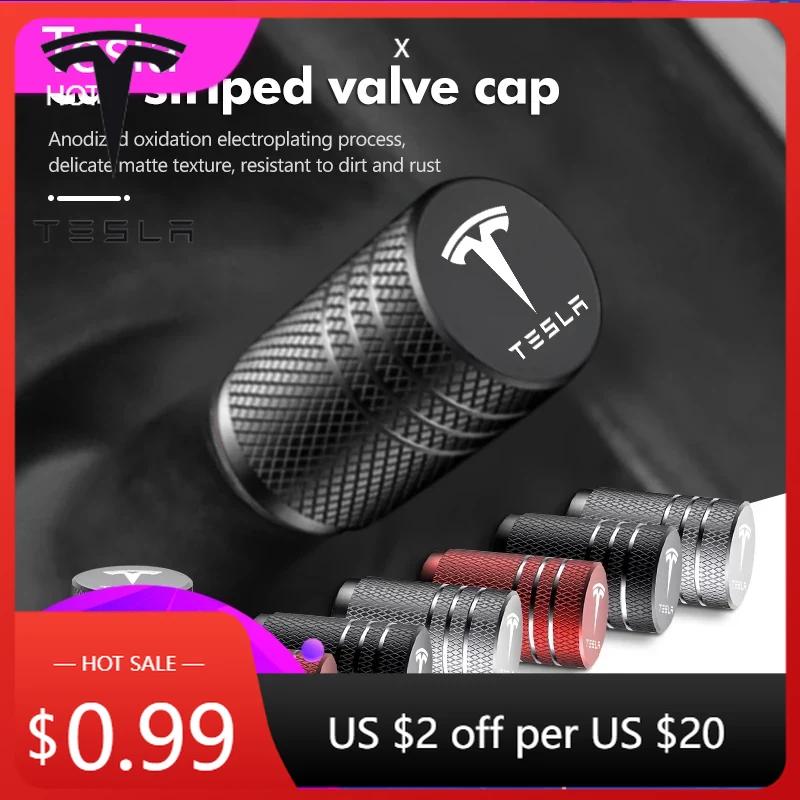 Car Sticker 2025 New Tesla Aluminum Alloy Car Wheel Tire Valve Cap Tyre Rim Stem Cover For Tesla Model 3 Y S X Roadster