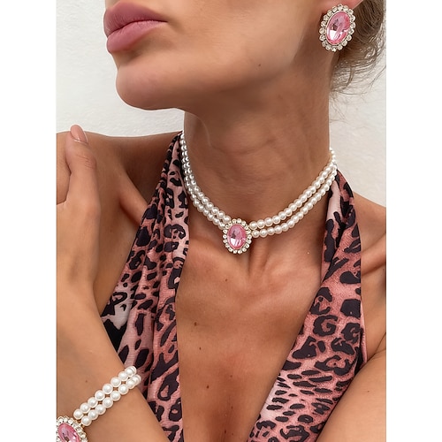 set di gioielli da donna composto da 4 pezzi con strass: collana scintillante, orecchini, braccialetto e anello per balli da sala, cocktail party ed eventi formali