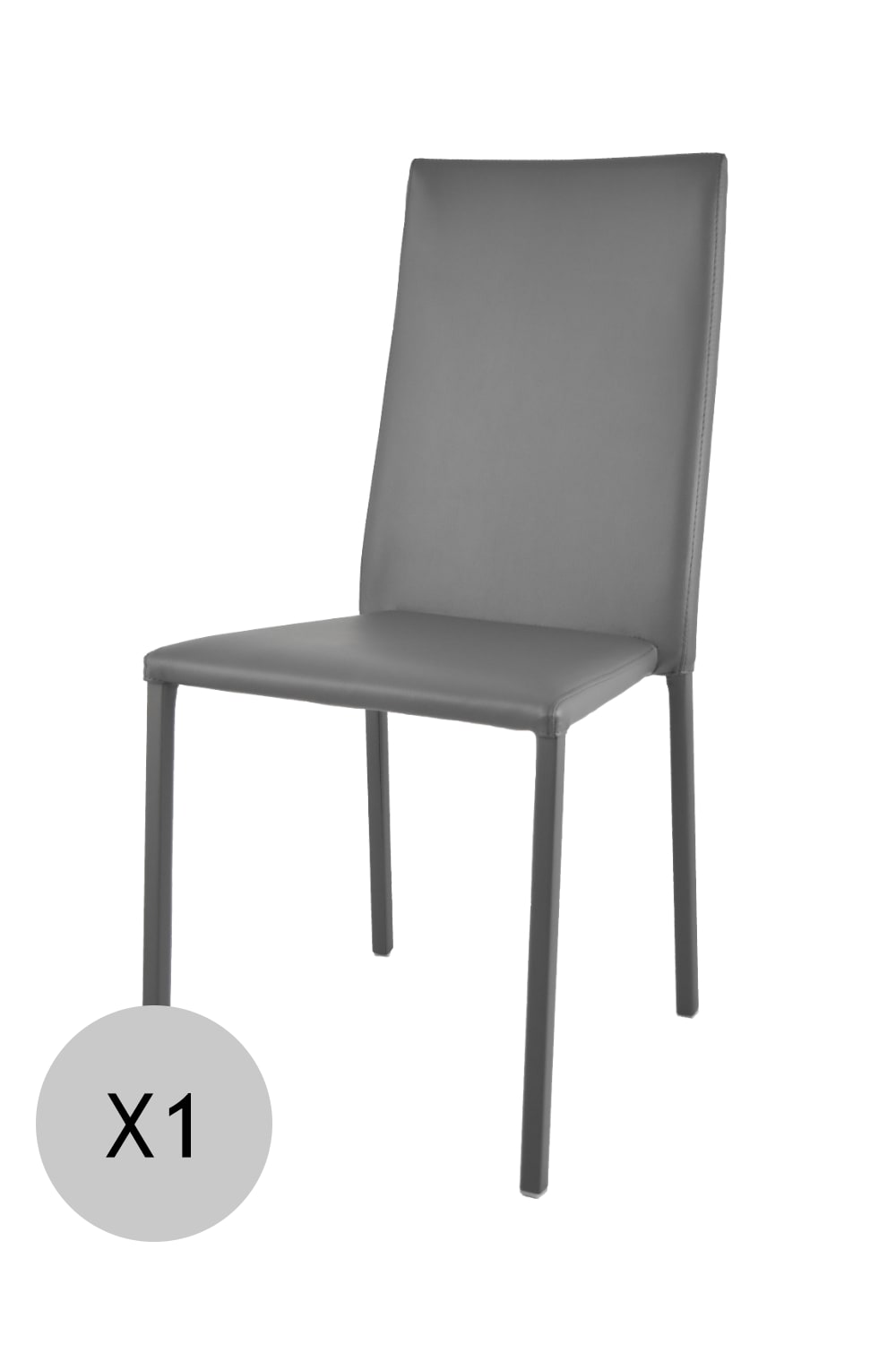 Sedia in acciaio imbottita rivestita in finta pelle grigio scuro