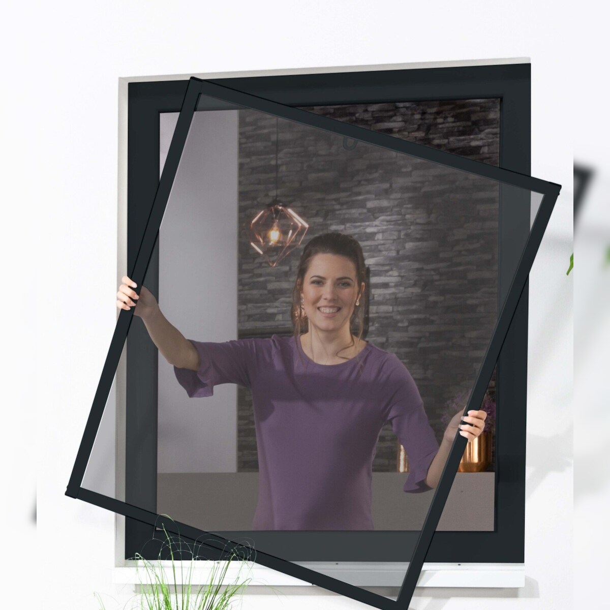 Insektenschutz-Fensterrahmen HECHT INTERNATIONAL "Basic", grau (rahmen: anthrazit gewebe: anthrazit), B:80cm H:100cm, Insektenschutzgitter, BxH: 120x140 cm, kürzbar