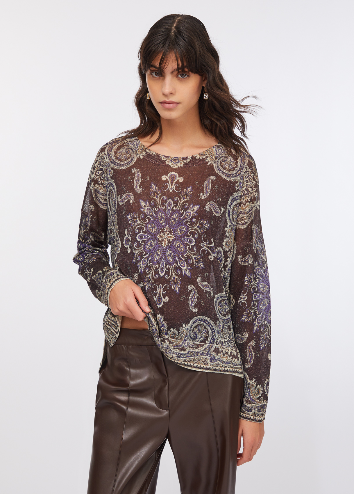 Liu Jo Maglia In Lurex®, Marrone Con Stampa, M