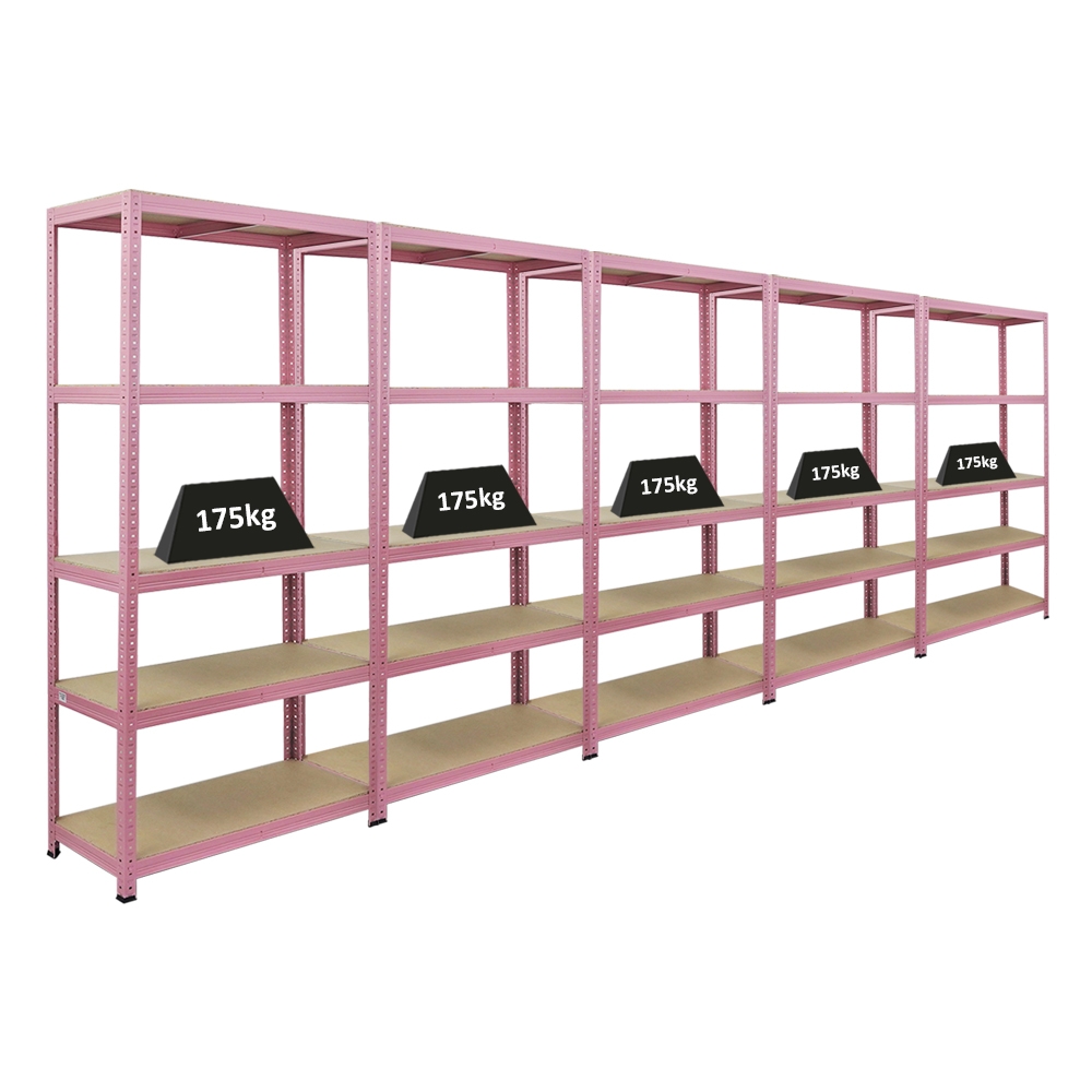 PROREGAL Mega Deal 5x Schwerlastregal PINK LADY, HxBxT 180x90x40cm, Fachlast 175kg, 5 Ebenen, Pink, Kellerregal, Steckregal, Garagenregal, Lagerregal