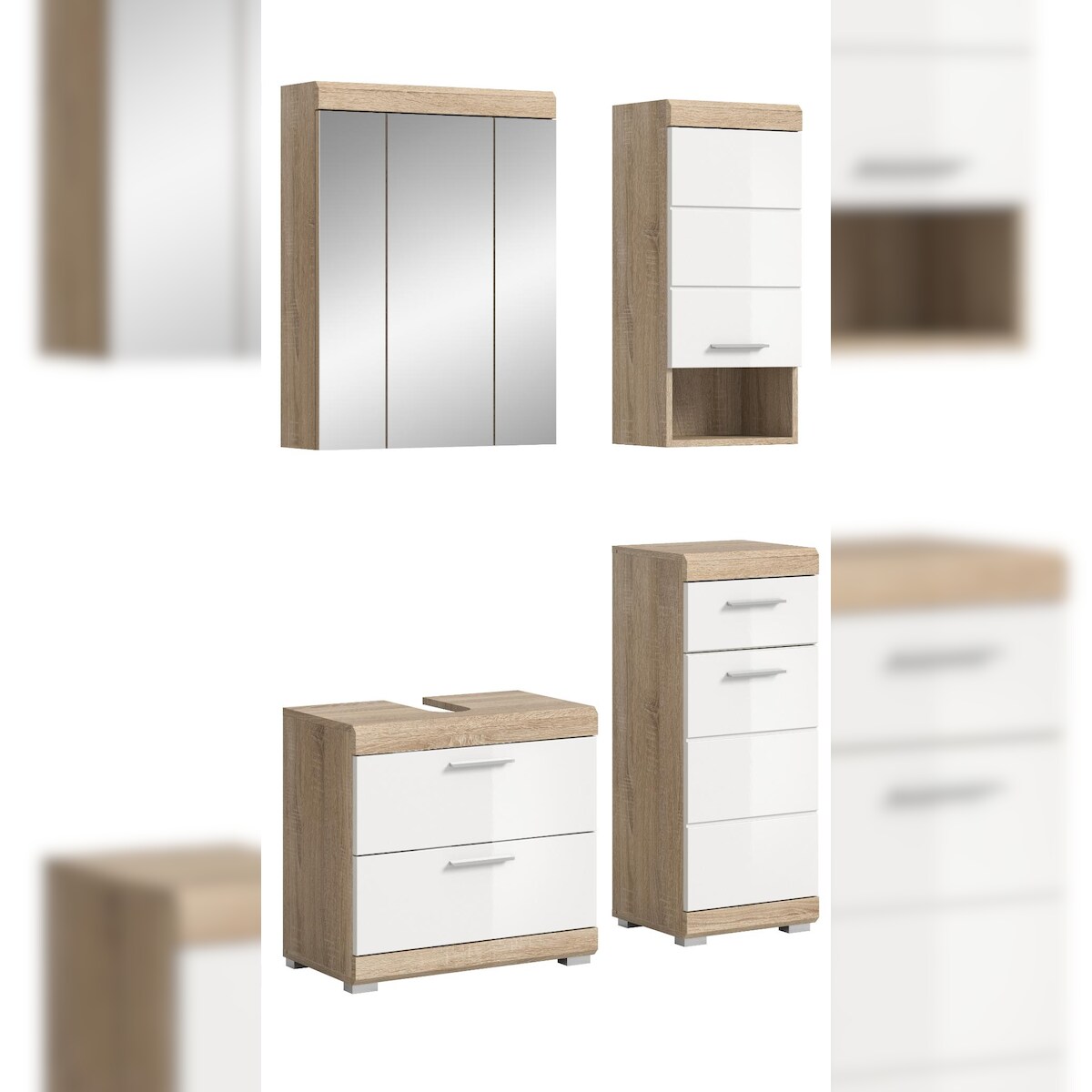 Ebuy24 Lambada Badmöbelset L21 Weiß hochglanz, Eiche Dekor.