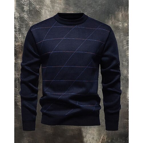 Per uomo Felpa Maglione Maglione a maglia A Coste Maglia Top Regolari Lavorato a maglia Semplice Girocollo Moda Streetwear Casuale Abbigliamento quotidiano Abbigliamento Autunno Inverno Blu marino Blu
