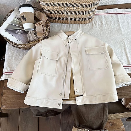 Bambini Ragazzi Giacca in pelle nera Giacca di pelle Capispalla Semplice Manica Lunga Con zip Impermeabile Antivento Cappotto Quotidiano Moda Casual Nero Marrone Beige Primavera Autunno 4-12 Anni