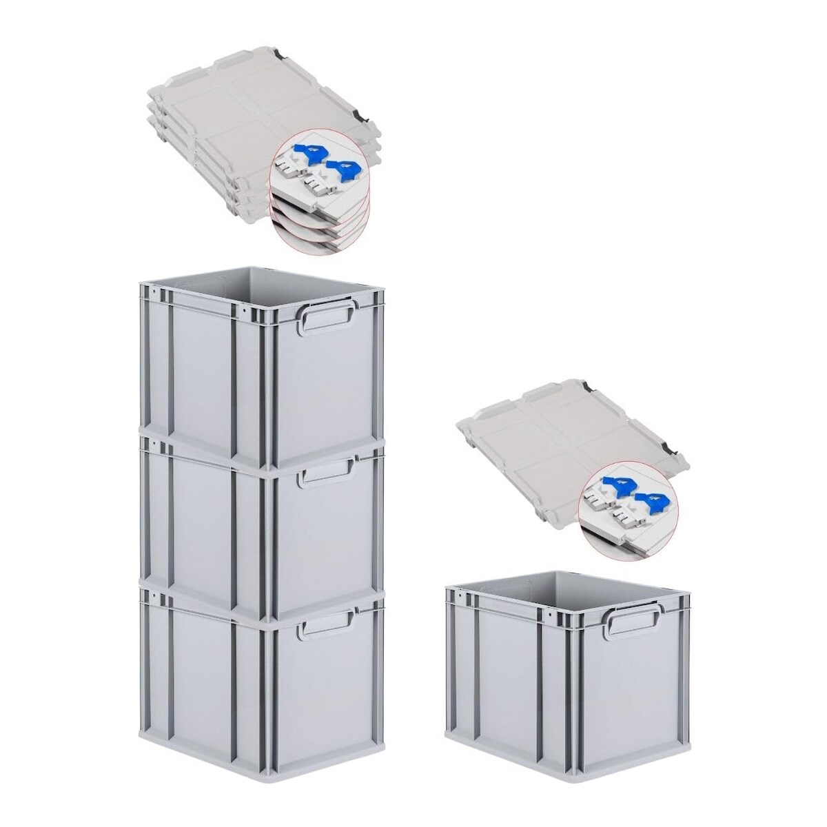 PROREGAL SuperSparSet 4x Eurobox NextGen Economy mit Scharnierdeckel & blauen Verschlüssen, Griffe zu, HxBxT 32x30x40cm, 30L, Eurobehälter, Box