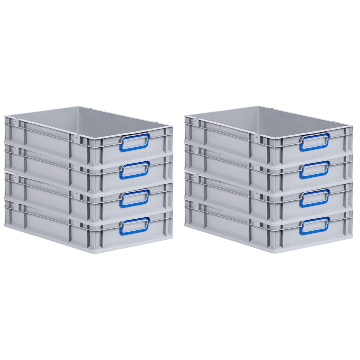 PROREGAL SuperSparSet 8x Eurobox NextGen Color, HxBxT 12x40x60cm, 23 Liter, Griffe blau zu, Grau, Eurobehälter, Box, Transportbehälter