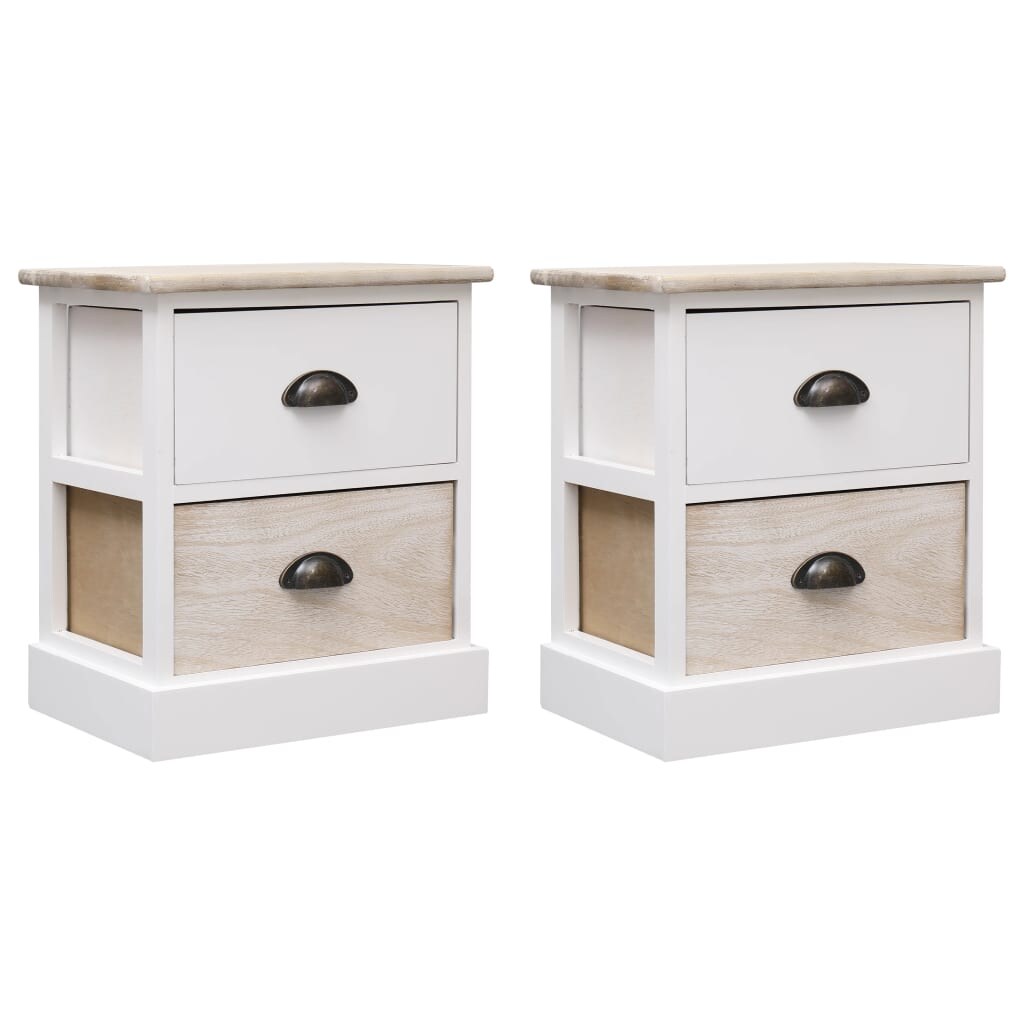 vidaXL 2 pcs Tables de chevet Blanc et naturel 38x28x45 cm Paulownia