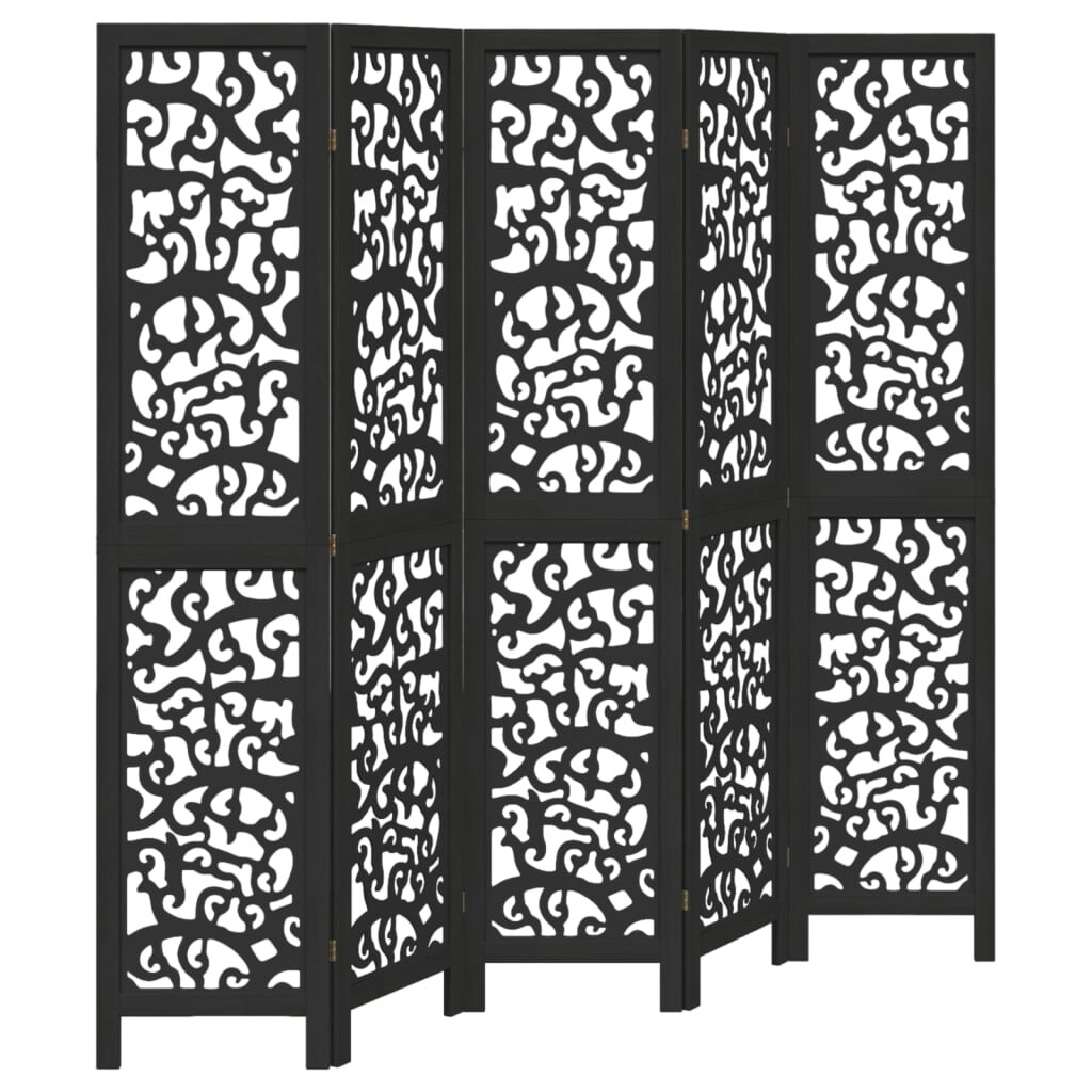 vidaXL Cloison de séparation 5 panneaux noir bois de paulownia massif