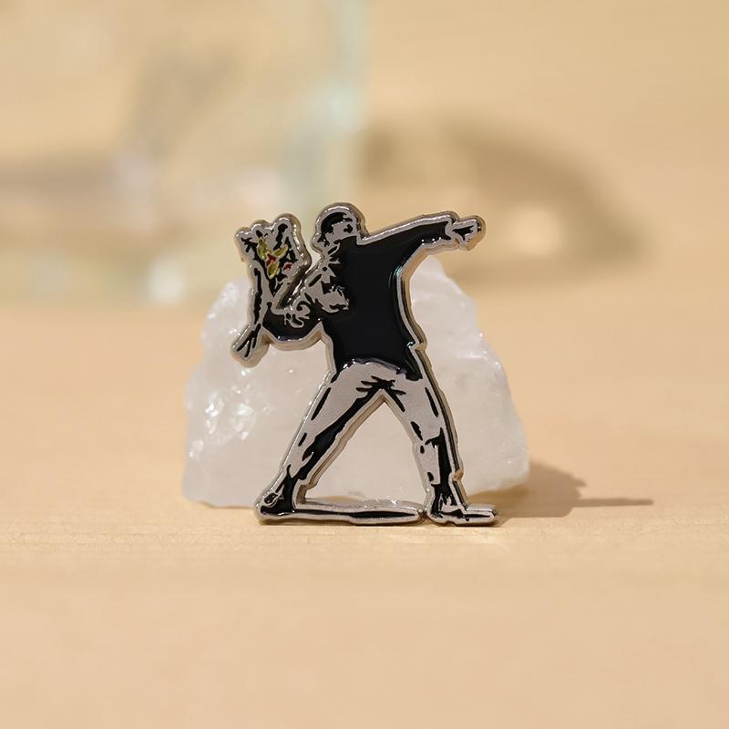 Banksy Emaille Pins Custom Grappige Graffiti Muur Skate Punk Broches Reversspeldjes Bloemenwerper Sieraden Cadeau Voor Kunst Vrienden