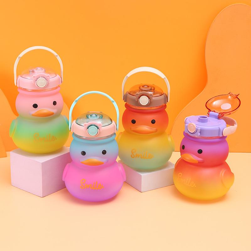650ml Cute Water Bottle for Girls with Straw Portable Children's Kawaii Duck Kettle Summer Large Capacity Plastic Drinking Cup cm blue