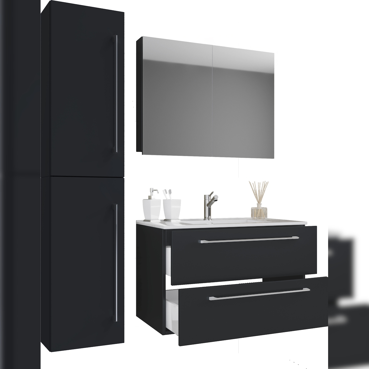 VCM Badmöbel Waschtisch Badinos Schwarz H. 151 x B. 113 x T. 46 cm
