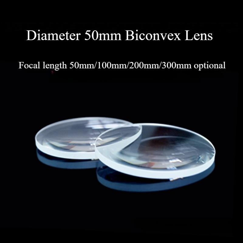 1 Stück 50mm Doppellinsen Brennweite 50/100/200/300mm K9 Optisches Glas Konvexe Linsen Lupe Bikonvexe Linse
