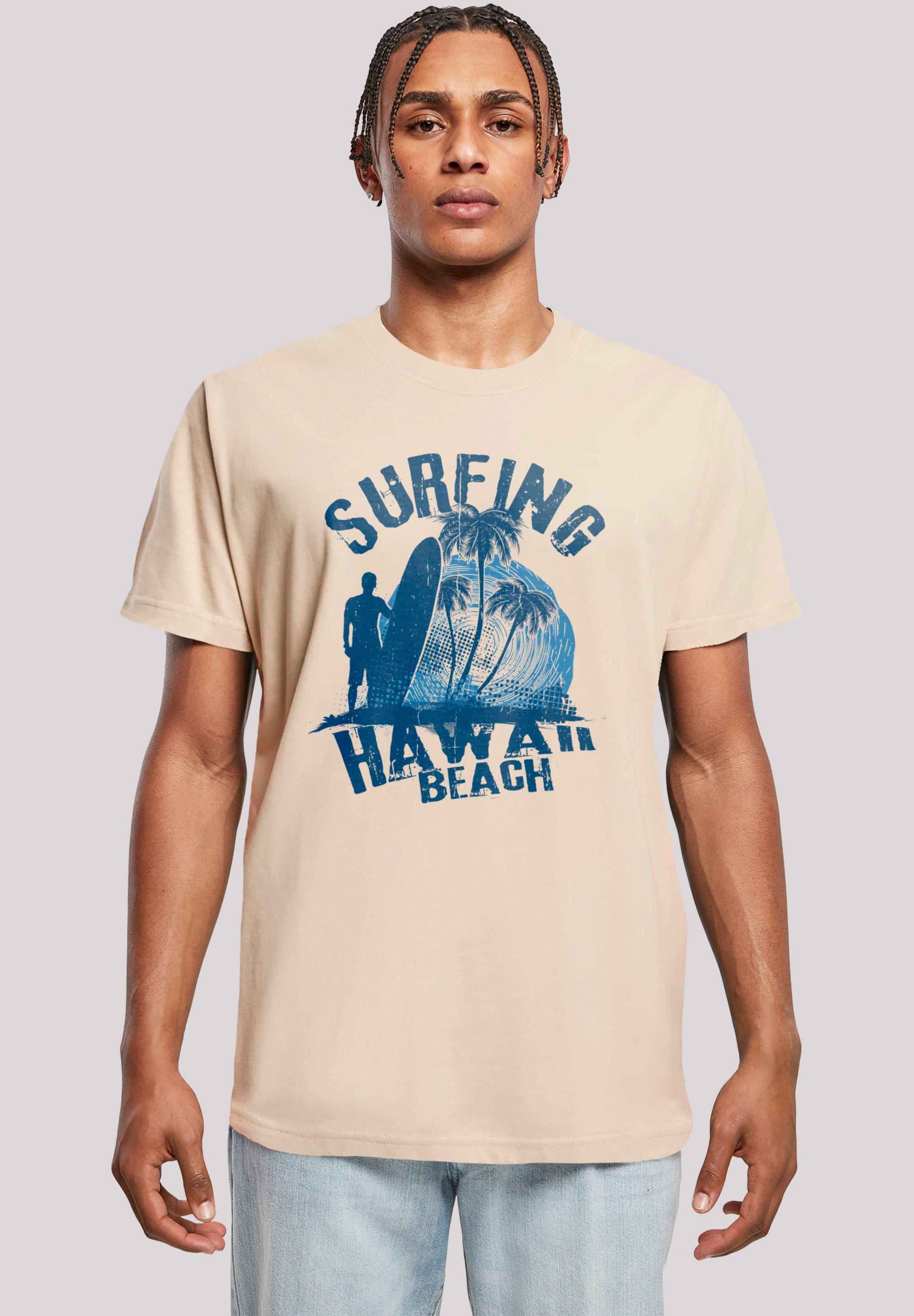 T-Shirt F4NT4STIC "Hawaii Surf Beach Summer", Herren, Gr. 4XL, beige (sand), Obermaterial: 100% Baumwolle, casual, regular fit, Rundhals, Kurzarm ohne Bündchen, Shirts, Premium Qualität