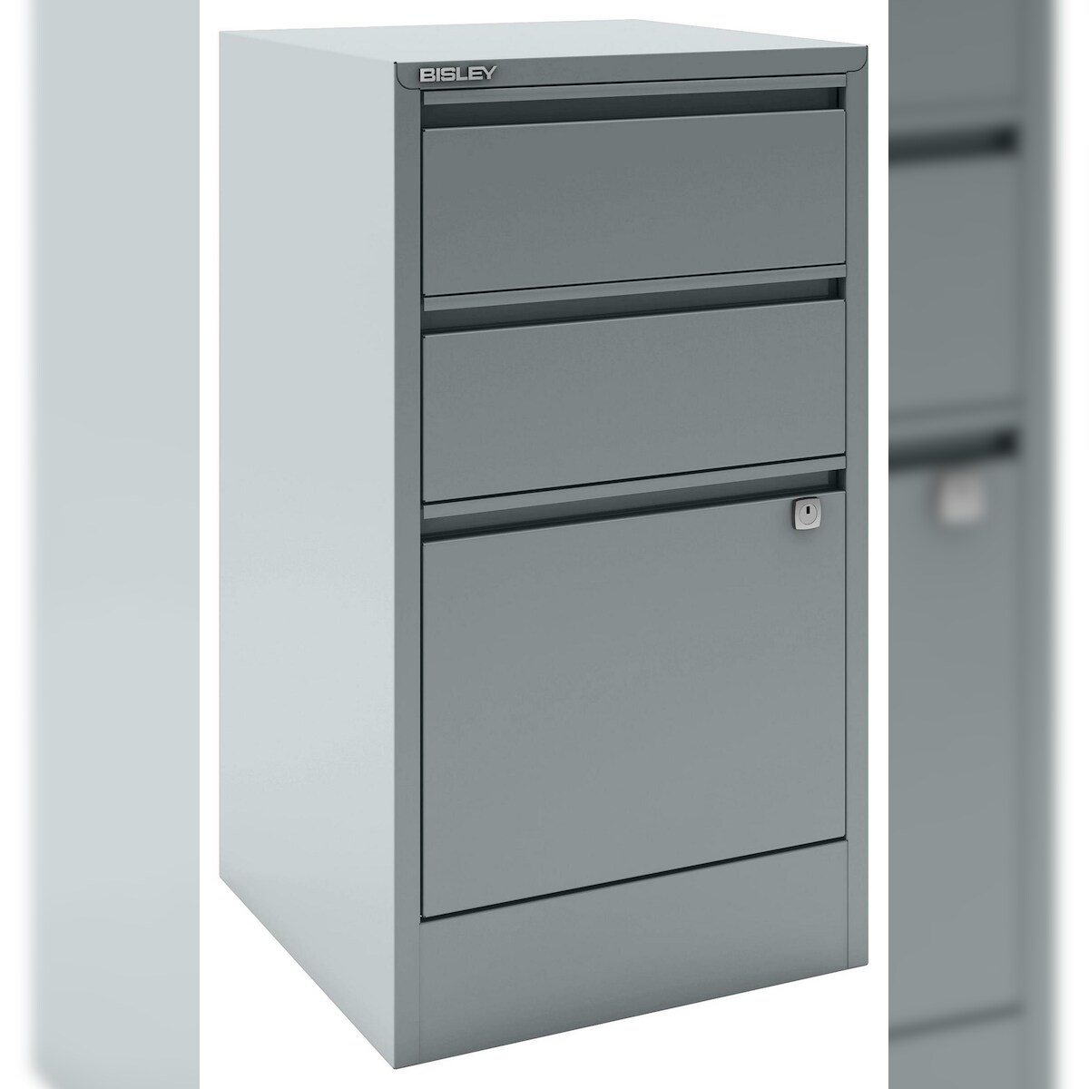 Schwerlastschrank, Höhe 1950 mm, 3 Fachböden, 3 Schubladen, grau Pavoy