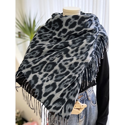 Sciarpa da donna con stampa leopardata: tessuto in poliestere morbido e confortevole, disponibile in vari colori, perfetta per un abbigliamento casual e invernale.