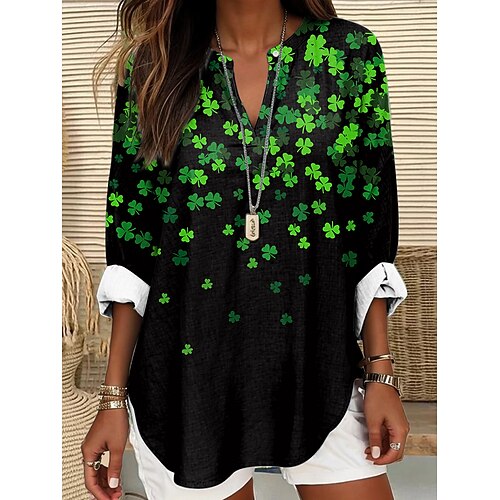 Tunica Camicia da Donna per il Giorno di San Patrizio Grafica Shamrock Vintage Stile Quotidiano Manica Lunga Collo a V Top Normale Stampa Giornaliera Festa Nera Bianca Estate Primavera