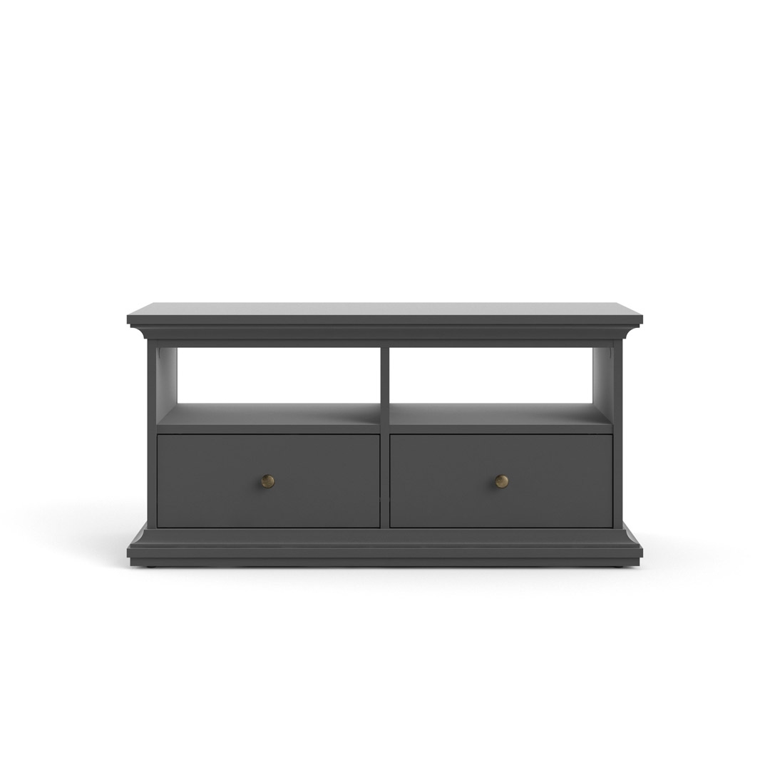 Ebuy24 Venedig TV Tisch 2 Schubladen und 2 Fächer matt grau.