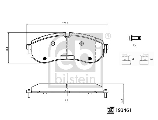 FEBI BILSTEIN Bremsbelagsatz, Scheibenbremse 193461 hinten rechts links für VW MAN 65.50820.6007 2N0698451A