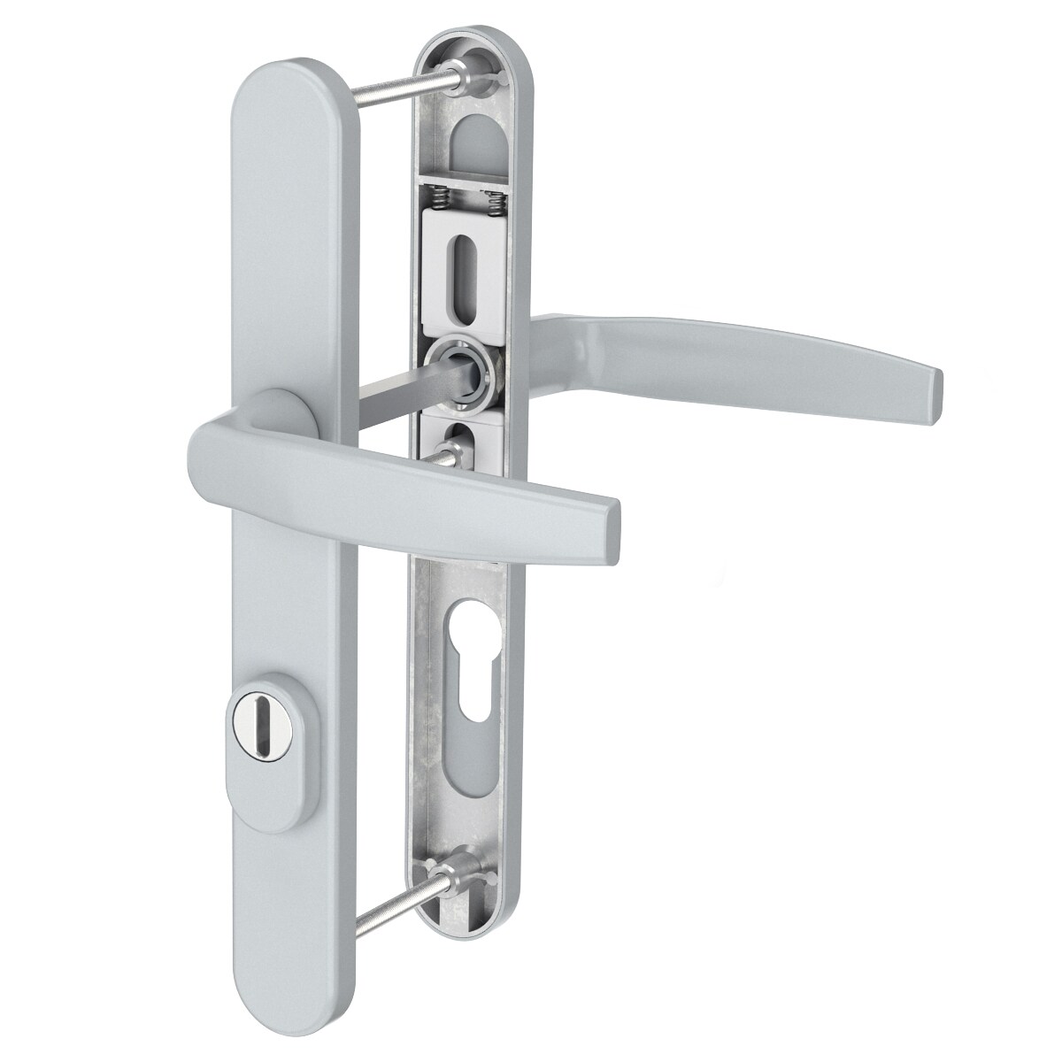 MS Beschläge Silberne Schmalrahmengarnitur 72mm PZ Kernziehschutz Drücker/Drücker 71-86mm