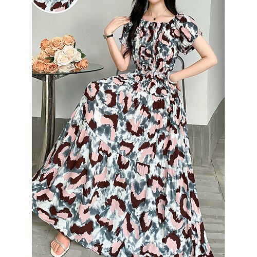 Per donna Abito maxi Abito a trapezio Abito Estivo Casual Quotidiano Vestibilità regolare Floreale Manica Corta Senza Spalle Blu Nero Bianco Verde chiaro Estate Primavera Autunno