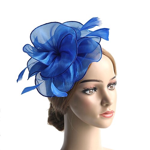 Fascinator Poliestere Cappello Fedora Cappello floscio Cappello con velo Ferie Tè Derby del Kentucky Corsa di Cavalli Cocktail Elegante Vintage Carino Con Piuma Colore puro Copricapo Copricapo