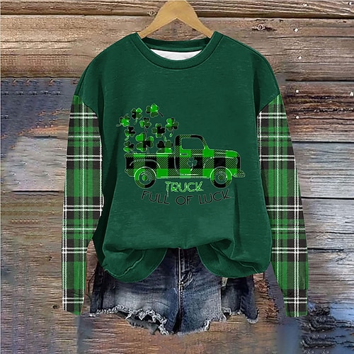 st. felpa con cappuccio grafica con stampa trifoglio irlandese del giorno di patrick per donna, adulto, stampa 3d, 100% poliestere, festa, festival