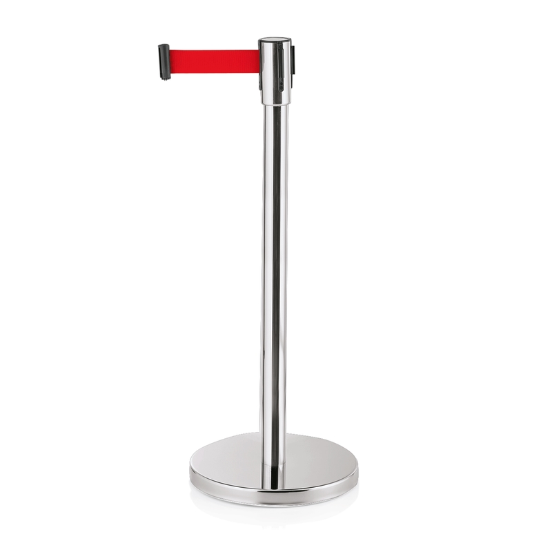 2x Abgrenzungspfosten Gurtband integriert 2 Meter rot Ecoflex Hochglanzpoliert