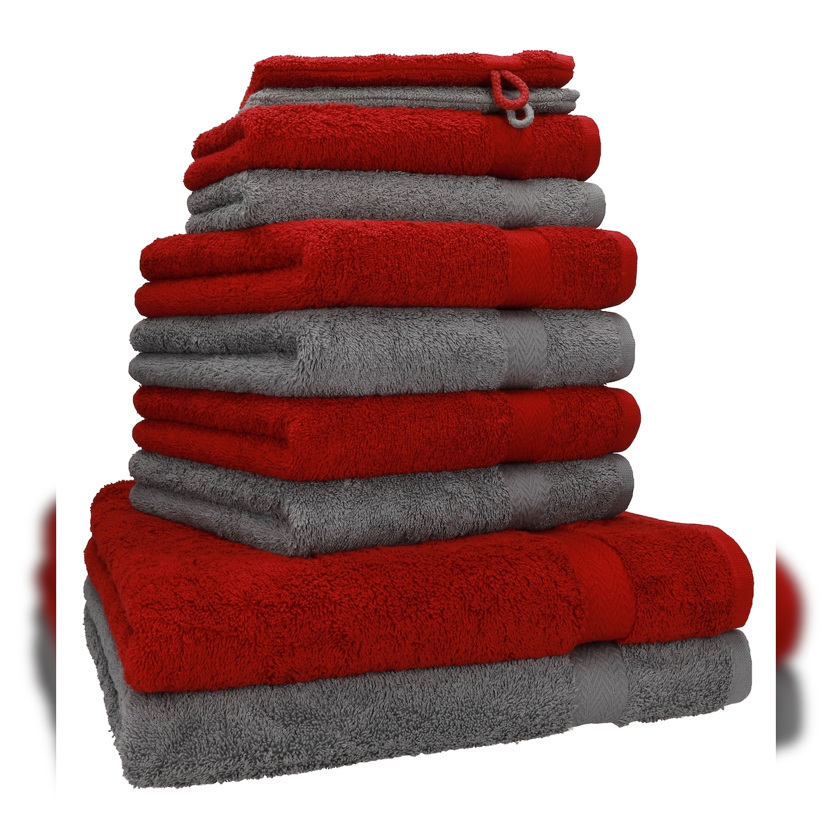 Betz 10-tlg. Handtuch-Set PREMIUM 100%Baumwolle 2 Duschtücher 4 Handtücher 2 Gästetücher 2 Waschhandschuhe Farbe Dunkel Rot & Anthrazit Grau