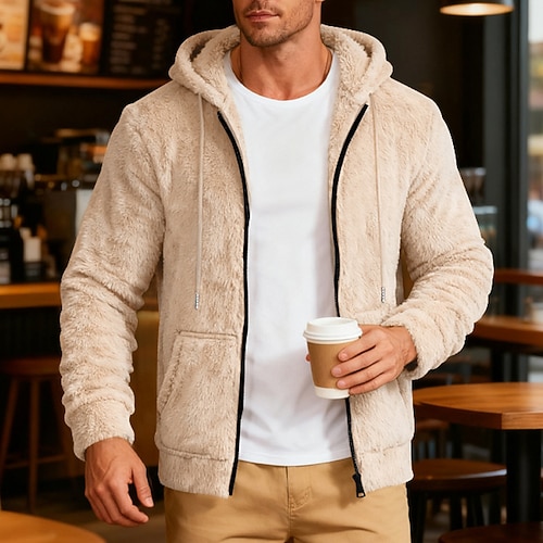 Per uomo Giacca da Esterno Giacca in Pile Formale Casa Tasca Cappuccio Rimovibile Inverno Autunno Tinta unica Attivo Neutro Con Cappuccio Nero Blu marino Verde Cachi Grigio Giacca