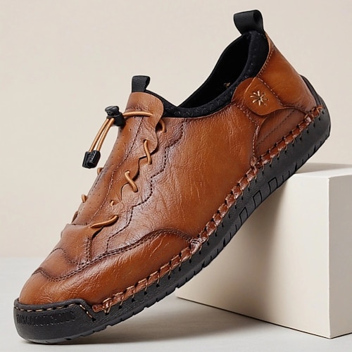 scarpe casual da uomo marroni fatte a mano con suola in gomma morbida e coulisse elastica, comode scarpe da guida per esterni, adatte ai viaggi e all'uso quotidiano