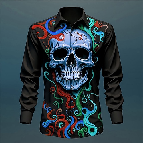 Camicia da donna con stampa teschi tunica bottonata colletto maniche lunghe grafica