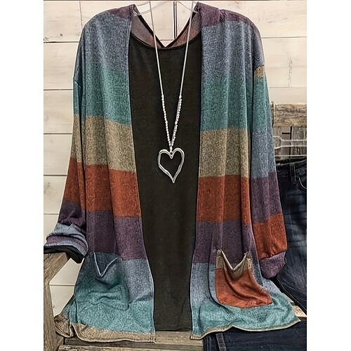 Per donna Giacca Casual Confortevole Traspirante Aperturaanteriore Casual A righe Vacanza Streetwear Abbigliamento quotidiano Uscire Aperto davanti Regolare Senza colletto Vestibilità regolare