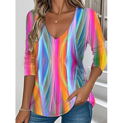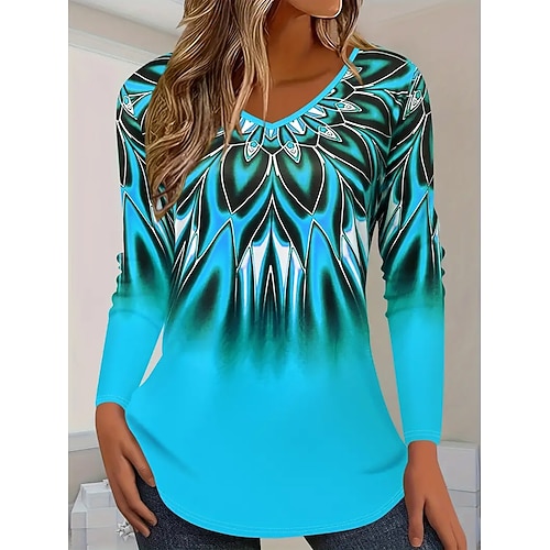 Per donna Maglietta Ombre Grafico Astratto Vintage Elegante Classico Manica Lunga Scollo a V Top Regolari Quotidiano Stampato Blu Rosso Arancione Grigio Primavera Autunno