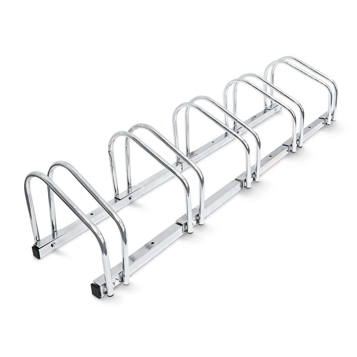 Relaxdays Fahrradständer, Für 5 Fahrräder, Boden- und Wandmontage, Mehrfachständer, HBT: ca. 26 x 130 x 32 cm, silber