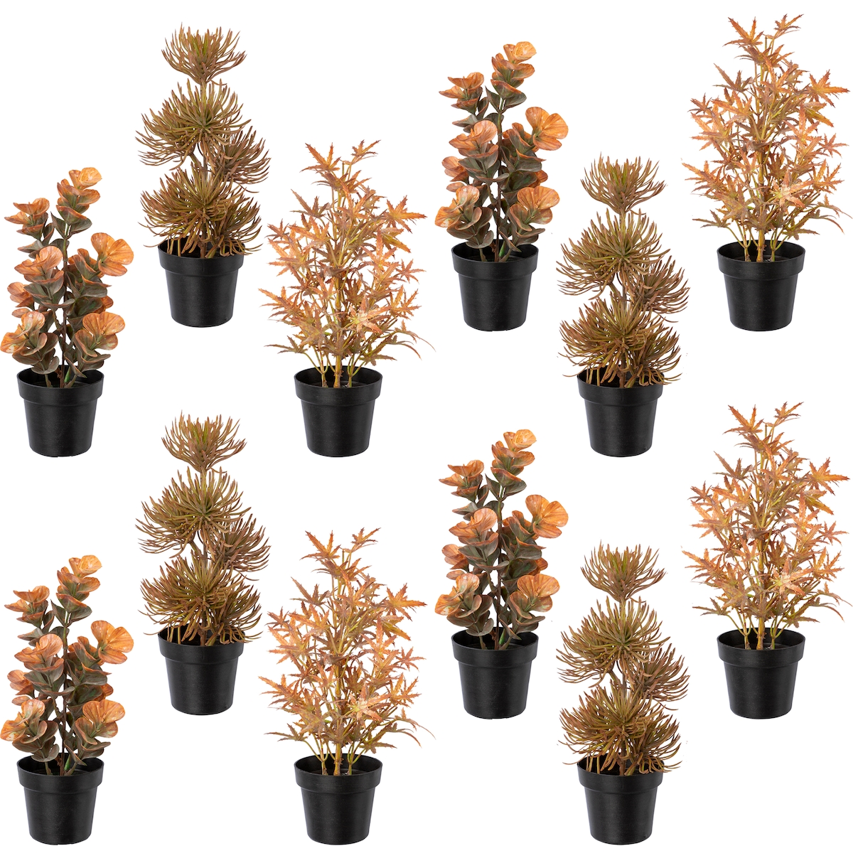 CREATIV green künstliche Pflanze Kunststoffpflanzen, ca 23-25cm herbstbraun im Kunststofftopf 7,5x6cm 12er Set