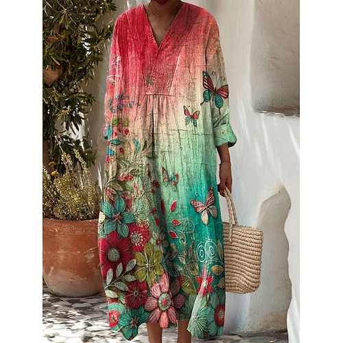 Per donna Abito maxi Vestito Estivo Abito a trapezio Casual Spiaggia Ferie Vestibilità comoda Ombre Grafico Geometrico Manica Lunga Scollo a V Viola Verde Grigio Estate Primavera Autunno