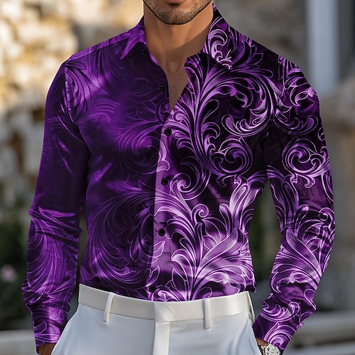 Per uomo Paisley Stampa Floreale Colore sfumato Camicia Camicia in raso Camicia elegante Manica Lunga Vintage Retrò Vacanza Abbigliamento Quotidiano Estate Primavera Autunno Collo ripiegato Stampa 3D
