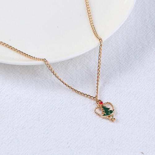 collana con ciondolo a forma di cuore con albero di Natale e orecchini per donna - regalo di gioielli per le feste con accenti rossi e verdi - ideale per feste di Natale e celebrazioni delle feste